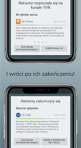 Oglądaj programy telewizyjne NIE REKLAMY - dzięki połączeniu Programu telewizyjnego (EPG) z pilotem i naszą darmową usługą. Zamiast oglądać reklamy w TV aplikacja Super Remote przełączy Cię na inny program bez reklam i włączy poprzedni kiedy reklamy się skończą.