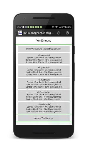 PS: Der Autor der Anwendung übernimmt keine Haftung für Berechnungsfehler. Der Arzt oder das medizinische Personal sollen immer die Berechnungen und die Richtigkeit der Verdünnung überprüfen.
