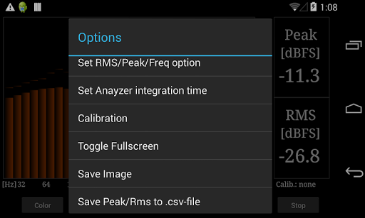 Professionelle Version des RTA-Audianalysators.Fügt 1/4, 1/6 und 1/12 Analysationsbandabstand mit bis zu 120 Bändern, skalierbaren Spitzenspitzen und mehr Farbschemata hinzu.Speichert dauerhaft Kalibrierungsdaten.Screenshots können gespeichert werden, und Peak / RMS-Werte können in eine .csv-Datei exportiert werden.