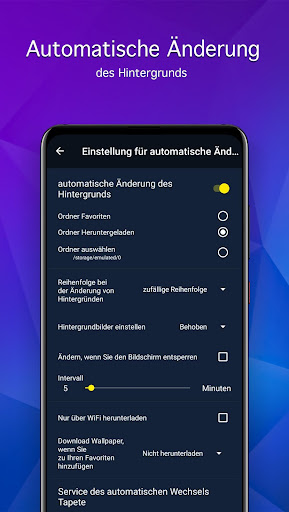 • Automatische Hintergrundänderung mit dem angegebenen Intervall (Live-Wallpaper)
