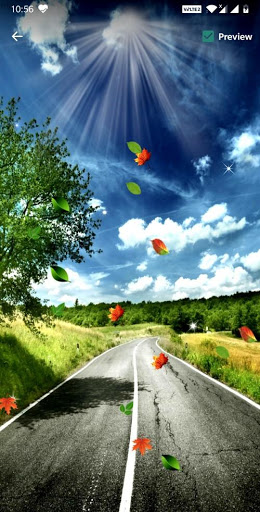Leaves : There are road pictures in this app " Road Live Wallpaper" in which trees are at both sides of the road.that is why in this app Garden Live Wallpaper we have also provided you the falling leaves animation. It gives a natural look to the Garden Live Wallpaper. When you touch the screen a bunch of leaves starting falling from the tree.