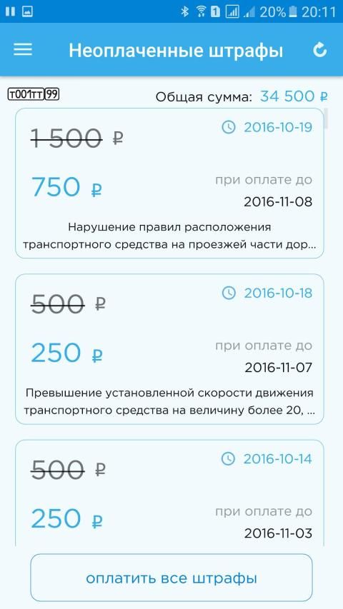 - бесплатные оповещения о новых штрафах