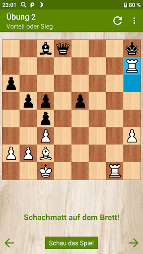 Nachdem jeder von ihnen gelöst wurde, bietet sich die Möglichkeit, das gesamte Schachspiel zu sehen, aus dem die Position des Problems gewonnen wurde.