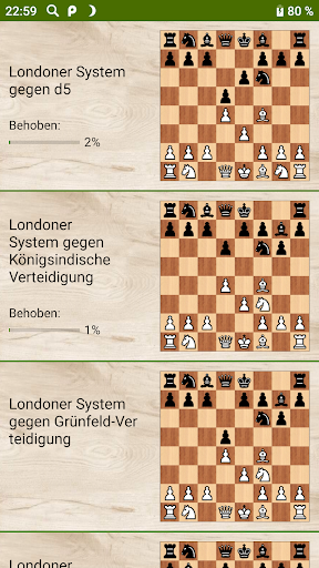 Die Rätsel sind in 4 Gruppen unterteilt, je nachdem, wie Schwarz versucht, das Londoner System zu bekämpfen. In allen Partien dieser App wurde der Sieg von den Schachspielern errungen, die mit weißen Figuren spielten.