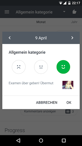 Du kannst auch Kommentare oder ein Foto hinzufügen, um den Tag besser darzustellen.