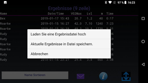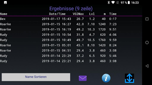- Ergebnisse sortieren. Nach Name, VO2Max oder Datum
