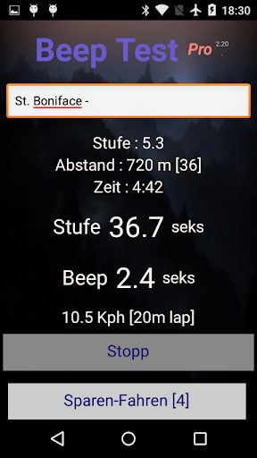 Eine verbesserte Version der kostenlosen Basis-Beep-Test-App ist unter https://play.google.com/store/apps/details?id=rudy.android.beep verfügbar.