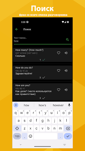 Kopieren, Hinzufügen zu den Favoriten oder Teilen von Phrasen; Dunkler Modus;