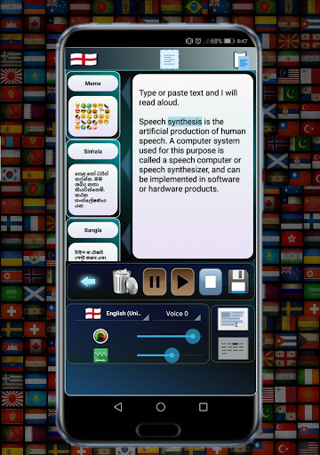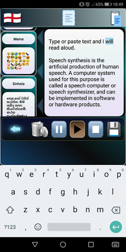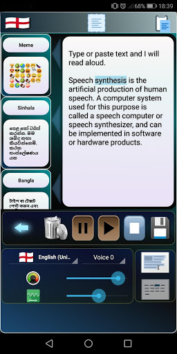 * Geben oder fügen Sie Text in vielen Sprachen ein und lassen Sie Text in Sprache in die ausgewählte Stimme einlesen.