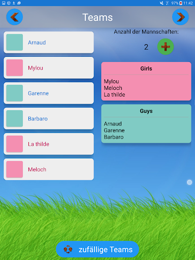 - Möglichkeit, zufällige Teams zu bilden.