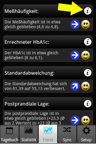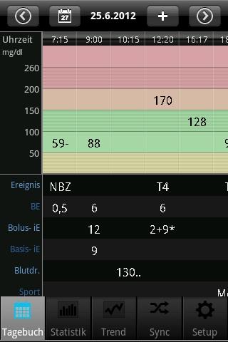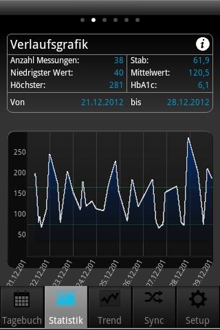 Ein Diabetestagebuch auf Ihrem Android-Gerät zu führen, ist mit SiDiary ganz einfach. Sie können hier alle für die Therapie relevanten Daten wie Blutzucker, Kohlenhydrate (BE/KE), Medikamente wie Insulin usw. schnell in einer einfachen Eingabemaske erfassen und dann auf Ihrem Android-Gerät einsehen und mit der Statistikfunktion, bzw. der Trendanalyse auswerten.
