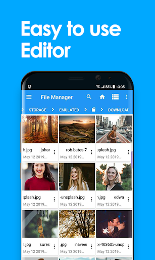 - Easy file browsing: Browse files easily by category right from File Manager’s home screen: images, videos, music, applications, downloaded, and favorites.