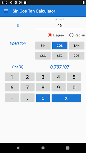 Eine perfekte Anwendung, wenn Sie Wissenschaftler oder Student sind und den Wert der trigonometrischen Funktionen schnell kennenlernen möchten.