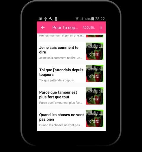 the app contains top love letter in French.