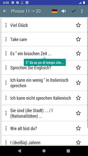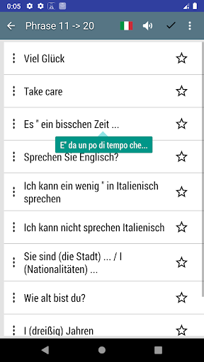 Italienische Konversationsphrasen ist eine einfach zu verwendende mobile italienische App, mit der Besucher nach Italien und diejenigen, die Italienisch lernen möchten, einen guten Einstieg in die Sprache erhalten.