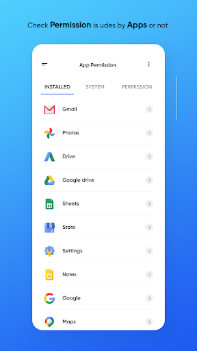 - App Wise Scan Alle Berechtigungen, die von installierten Apps auf dem Gerät verwendet werden.