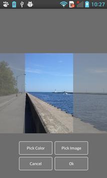 Set wallpaper: Pick a color (you can save memory): click center circle to confirm a color. or pick a image: confirm cut rectangle