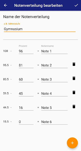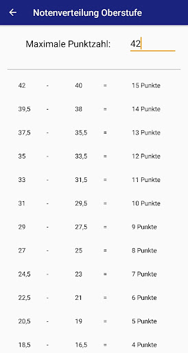 Diese App ist der ultimative Begleiter für alle Lehrer. Sie ermöglicht dir die einfache mobile Berechnung der Notenverteilung und sieht dabei auch nocht super aus. Dank der zahlreichen Einstellungs- und Anpassungsmöglichkeiten kannst du u.a. beliebig viele Noten/Abstufungen anlegen sowie zwischen verschiedenen Berechnungsmethoden wählen, und die App somit individuell an deine Anforderungen anpassen!