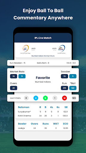 Live Cricket Tata IPL 2022 : Best App for Cricket Live Line & all cricket live matches score, provides you fast Live Cricket Score & Updates with accurate Market Odds and Session.