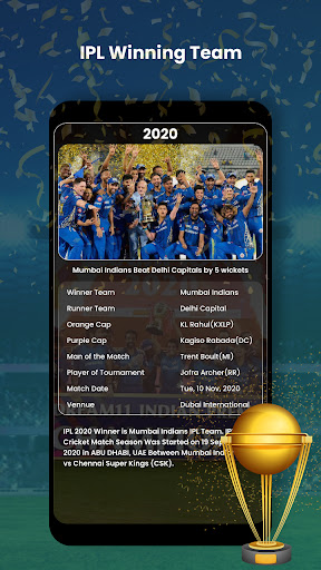 - Live Cricket IPL Complete match information with the team's current form and squads.