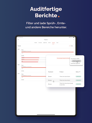 ■ Lade fertige Pflanzenschutzberichte für Audits und Zertifizierungen herunter, fertig für Global GAP, QS GAP, Euro GAP usw.
