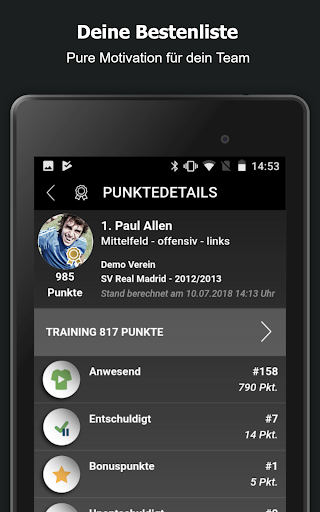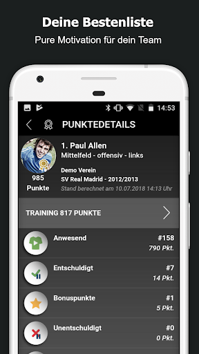1) Endlich findest du alle bekannten Statistiken in App. Hierzu zählen Spieler-, Training-, Spiel- und Turnierstatistiken.