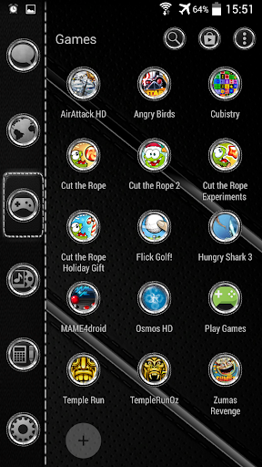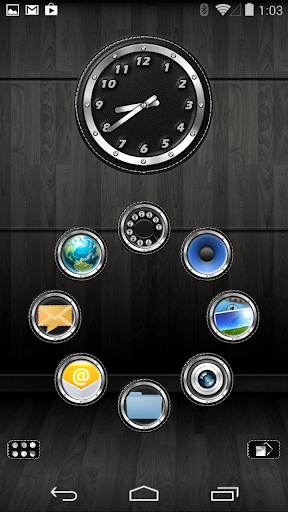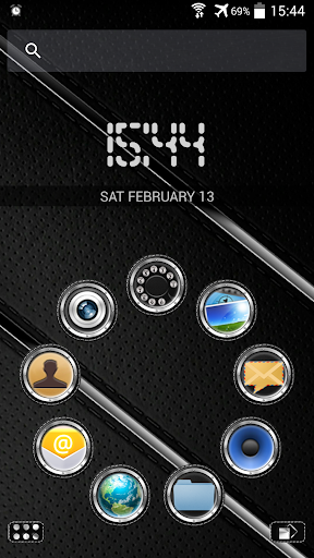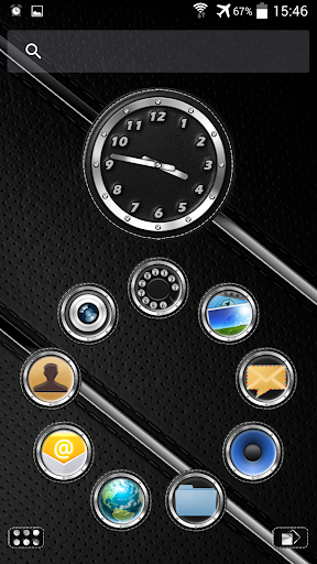 Smart Launcher-Thema. Extrem detailliertes und hochwertiges elegantes und modernes Smart Launcher-Thema mit High-Definition-Grafiken Automatik-Themen-Symbole, 13 benutzerdefinierte Themen-HD-Wallpapers und ein Metall-Takt-Widget, um selbst in Geräten mit den Bildschirmen mit höchster Auflösung sehr detaillierte und definierte Grafiken zu ergeben. Alles ist mit metallischen Texturen, Beleuchtungseffekten, Reflexionen und Farbverläufen in den letzten Details thematisiert, um einen großen Kontrast- und Qualitätslook zu ergeben.