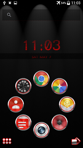 Smart Launcher-Thema. Extrem detailliertes und hochwertiges elegantes und sportliches Smart Launcher-Thema mit High-Definition-Grafik-Automatik-Symbole, 9 benutzerdefinierte Themen-HD-Hintergrundbilder und ein Metall-Takt-Widget, um selbst in Geräten mit den Bildschirmen mit höchster Auflösung sehr detaillierte und definierte Grafiken zu ergeben. Alles ist mit metallischen Texturen, Beleuchtungseffekten, Reflexionen und Farbverläufen in den letzten Details thematisiert, um einen großen Kontrast- und Qualitätslook zu ergeben.