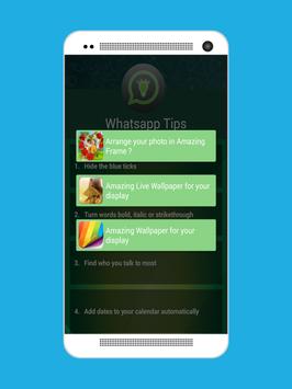 WhatsApp Tips App is also simple and easy to use Application like WhatsApp that will provide you useful tricks that will improve your user exprience.Our app contains tricks of Whatspp application and will also provide you detail description on how to implement that trick in your phone. Besides tricks our Application will also provide detail description of new features included by Whatsapp in it latest and previous releases about which we are not aware.You can now easily apply this tricks in your Whatsapp Application and surprise your friends,colleagues,relatives about that trick that you have implemented in the chat.