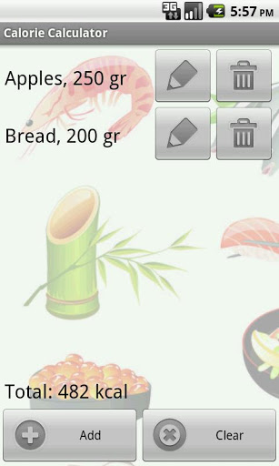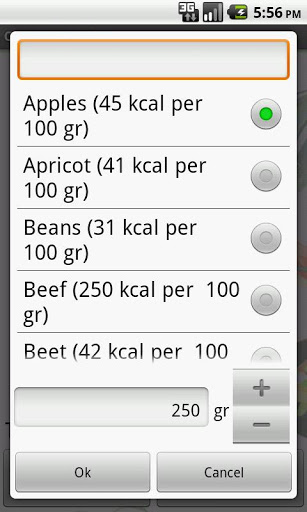 find out the amount of calories proteins, fats and carbohydrates in foods and dishes.3000 products and dishes.language english