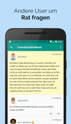 Treffen Sie neue virtuelle Freunde und tauschen Sie sich anonym aus. Sie können sich nicht nur austoben und um Rat fragen, sondern auch neue Freunde finden und über all Ihre Probleme und Freuden sprechen.