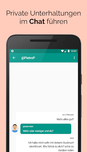 Wir sind eine Gruppe mit dem Ziel, uns gegenseitig zu helfen. Sie können Ihre Ängste den anderen Teilnehmern mitteilen, die Ihnen im öffentlichen Chat oder in anonymen und privaten Gesprächen Ratschläge erteilen.
