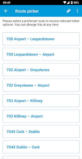 Die Aircoach Mtickets App bekommt Ihr Ticket direkt an Ihr Telefon, wenn Sie nach und vom Flughafen Dublin gehen oder nach Cork- oder Belfast-Städten fahren.