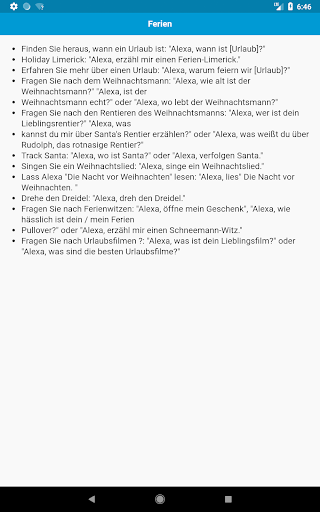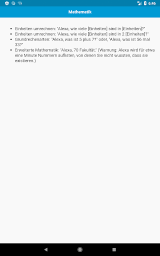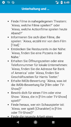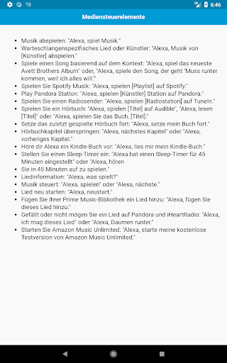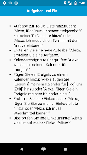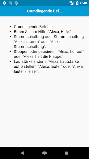 Komplette Liste der Amazon Alexa / Echo Dot Befehle. Alles, was Alexa für dich tun kann. Amazon Echo Dot ist ein Freisprech-Lautsprecher, den Sie mit Ihrer Stimme steuern können. Echo stellt eine Verbindung zum Alexa Voice Service her, um Musik abzuspielen, Informationen, Nachrichten, Sportergebnisse, Wetter und mehr bereitzustellen. Die Alexa-Plattform ist voller erstaunlicher Fähigkeiten und Funktionen, die nur darauf warten, dass Sie sie aktivieren und testen. Mit dieser App können Sie alle Dinge kennen, die Alexa für Sie tun kann.