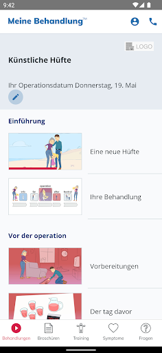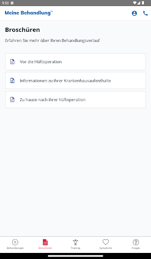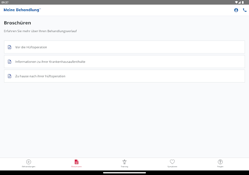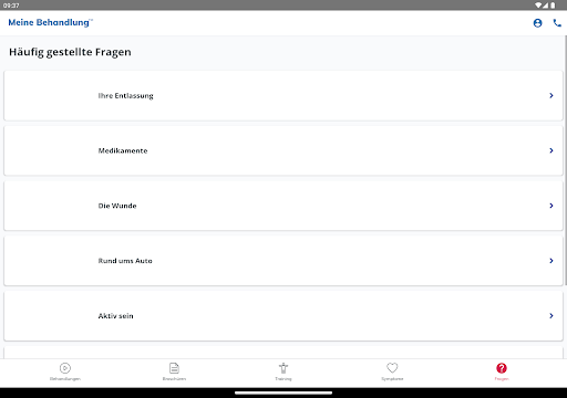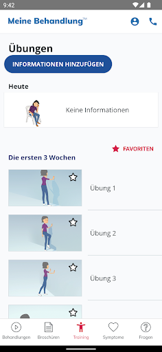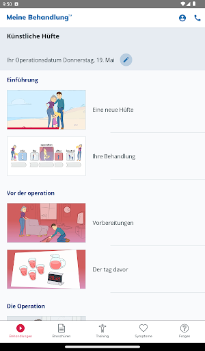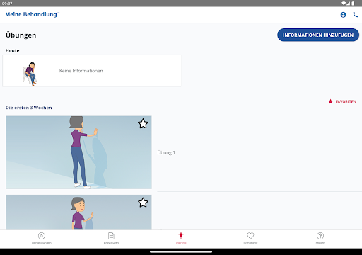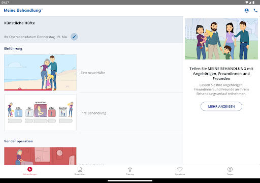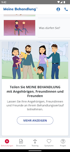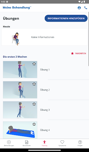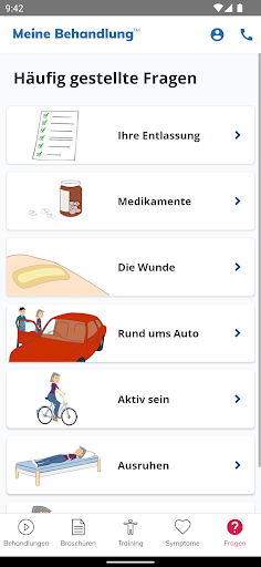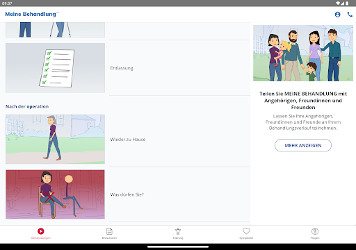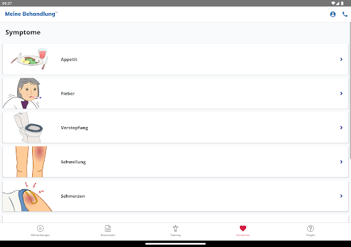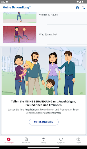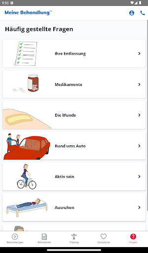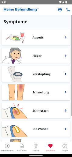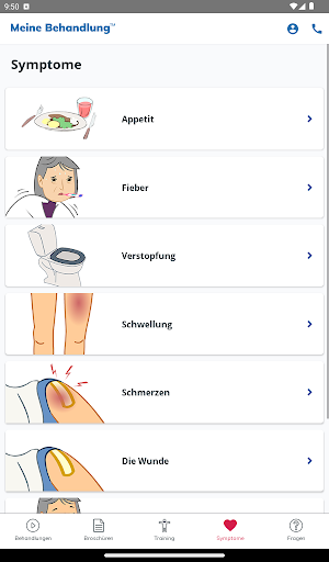 My Treatment unterstützt Sie auch bei der Rehabilitation durch einfache Animationen, einen Symptomleitfaden zur raschen Abklärung Ihres Zustands, ein Notizbuch zur Erinnerung an wichtige Fragen für den Arzt und vieles mehr.