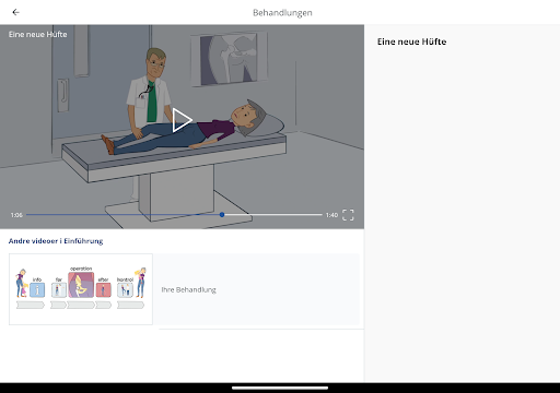Meine Behandlung ist für Sie, die eine größere Operation in einem Krankenhaus durchmachen müssen. Mit animierten Filmen, Visualisierungen und Anleitungen werden Sie und Ihre Angehörigen auf alles vorbereitet, was Sie vor, während und nach dem Krankenhauseintritt durchmachen müssen.