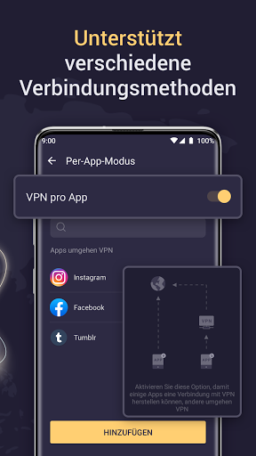 3. Per-App-Modus. Sie können bestimmte Apps so einstellen, dass VPN umgangen wird
