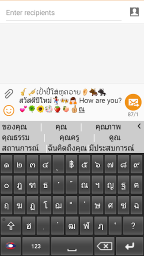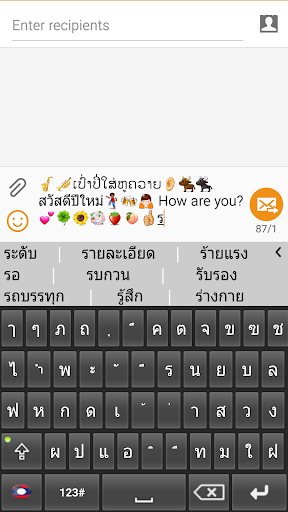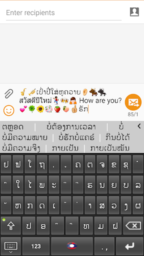 Lao 1keyboard verfügt über eine Text-Predictive-Funktion, mit der Benutzer lao Wörter mit weniger Tippen schnell auswählen können.Darüber hinaus verfügt Lao 1keyboard auch eingebaute Emoticons / Emojis-Funktion mit nahezu 1000 schönen Emoticons / Emojis zur Auswahl.Willst du thailändisch oder lateinamerkt eingeben?Lao 1keyboard ermöglicht es Benutzern, von Lao zu Thai zu den lateinischen Tasten von Lao zu wechseln, um die EMoticons / Emoji aufzurufen, auf der Tastatur von links nach rechts oder von oben nach untenzu vsapp012016@gmail.com.