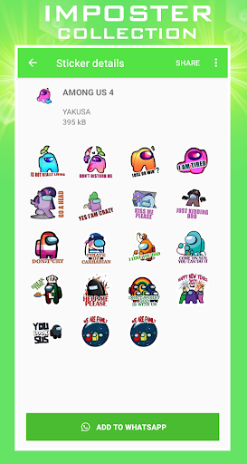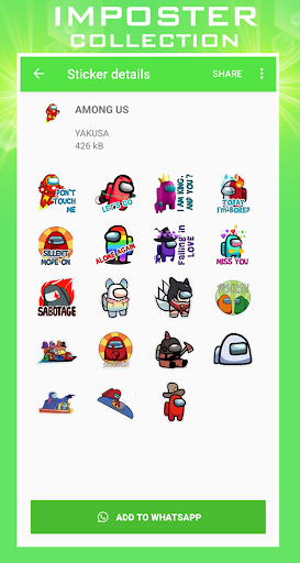 Imposter stickers for WhatsApp, sometimes there are no words that can convey the message you want to convey or share, this is where you download sticker wa. Stickers are very useful when chatting on WhatsApp, chat will feel more interactive and fun.