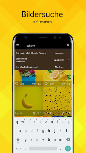 Nachdem Sie ein Bild gewählt haben, können Sie es herunterladen, zu Favoriten hinzufügen oder sofort als Hintergrundbild auf Ihr Handtelefon oder Tablet installieren. Alle gelbe Bilder können auf den Sperrbildschirm installiert werden.