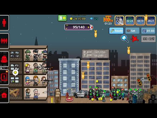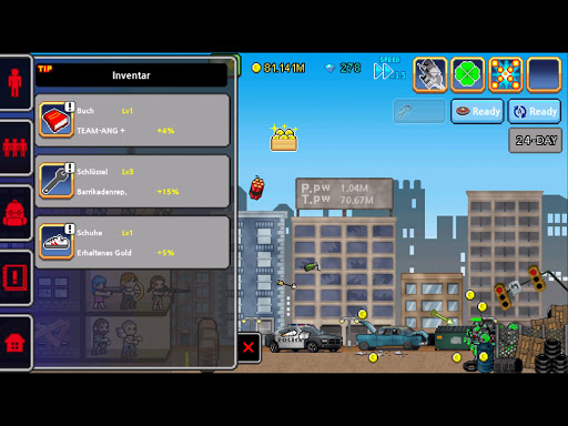 Töte Zombies für Gold. Benutze Gold, um Teammitglieder zu verbessern und das Camp in Schuss zu halten.