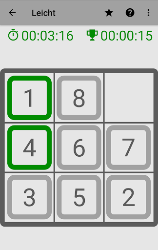 Das Ziel von 15er Puzzle Spiel ist es, die Nummern von Eins bis Fünfzehn (oder das Maximum der Zahlen, abhängig von der Grösse) auf dem Spielbrett zu sortieren. Die Nummern werden aufsteigend in einer Zeile (also horizontal) sortiert. Die nächste Zeile folgt die Reihenfolge fort.