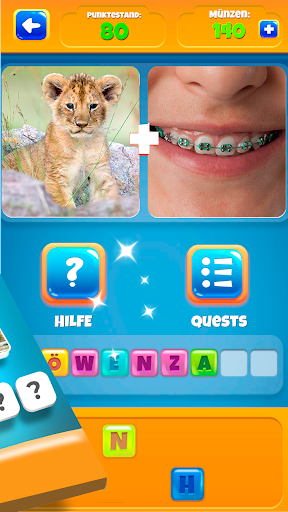 Hier ist eine Revolution bei den Wortspielen, nur für wahre Sprachgenies; das ist ein neues Konzept des Spiels, wo du zusammengesetzte Wörter aus zwei Bildern finden musst.