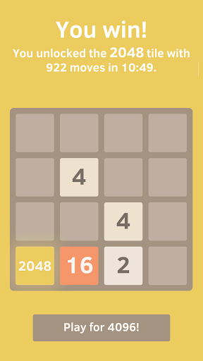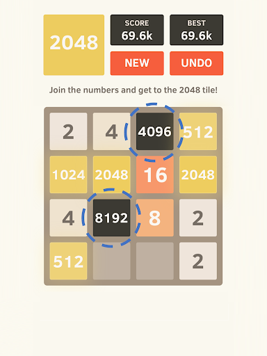 Wische einfach, um die Kacheln zu verschieben. Wenn sich zwei Kacheln mit derselben Zahl berühren, verschmelzen sie zu einer Kachel. Erreiche die Kachel 2048 und spiele weiter, um Kacheln mit höheren Werten freizuschalten!