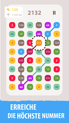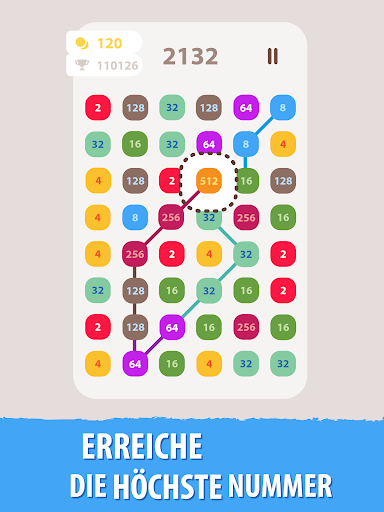 Dies ist ein süchtig machendes Zahlenspiel. Verbinde die gleichen Zahlen und gewinne Punkte in diesem lustigen, kostenlosen Zahlenspiel. Beginnen Sie mit einer Basisnummer. Kombiniere es mit der gleichen oder der doppelten Zahl. Erstellen Sie die längstmöglichen Links. Erreiche die höchsten Kacheln und die höchste Punktzahl!