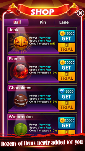 - Wunderschöne Bowlingkugeln, Pins & Bahnen, um Ihr Können unter Beweis zu stellen.