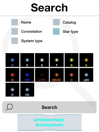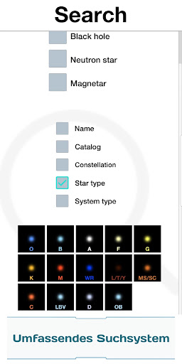 ★ Suche nach Sternen nach Konstellation, Name, Katalog oder Sterntyp (Farbe)