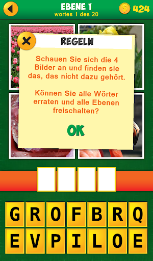 Schauen Sie sich die 4 Bilder an und finden sie das, das nicht dazu gehört. Das klingt einfach, aber einige Rätsel können tückisch sein. Wenn Sie Quiz und Wortspiele mögen, werden Sie dieses fantastische Rätsel genießen.