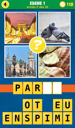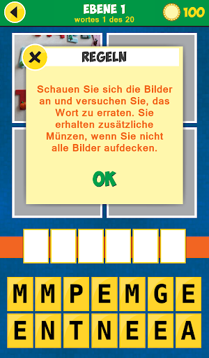 • Die Bilder werden einen nach dem anderen gezeigt. Erraten Sie das Wort mit wenigen Bildern und verdienen Sie mehr Münzen!
