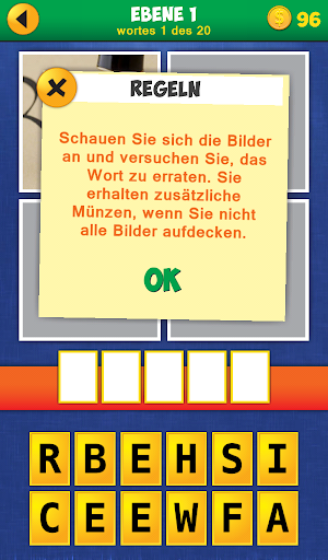 • Die Bilder werden nacheinander aufgedeckt. Erraten Sie das Wort mit den wenigsten Bildern geöffnet und verdienen Sie sich mehr Münzen.